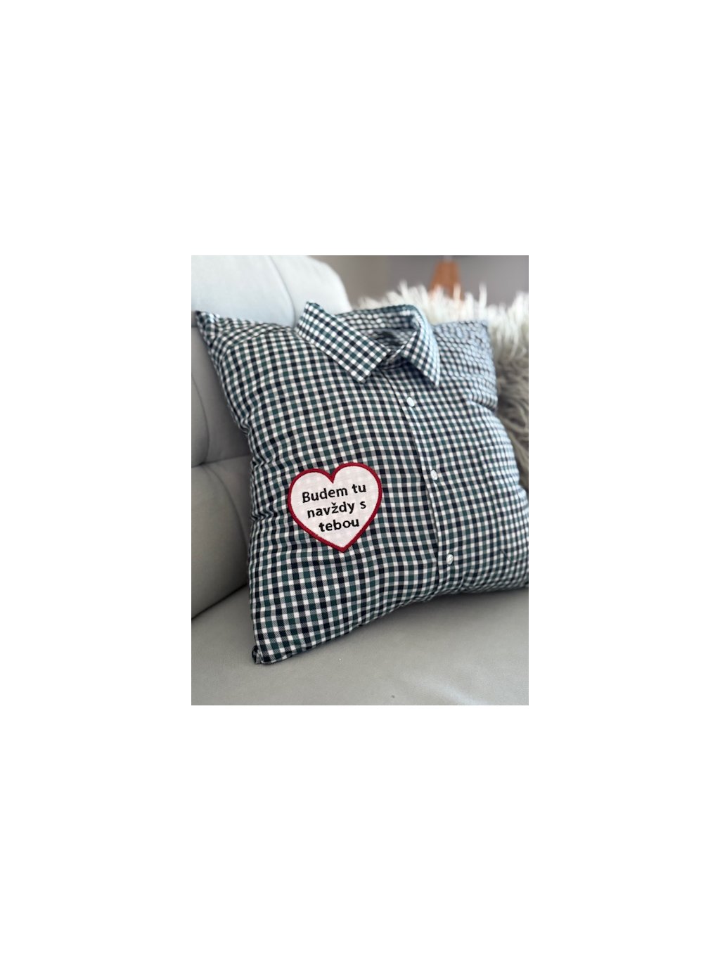 Na výrobu pamiatkového vankúša je potrebné zaslať minimálne jeden väčší kus oblečenia (košeľa, mikina, sveter, tričko a pod.). Z odoslaného oblečenia vytvorím nezameniteľný vankúš so srdiečkom, do ktorého je možné vpísať vlastný odkaz, meno, dátum, motto či krátku vetu, ktorá pre vás nesie hlboký význam.
